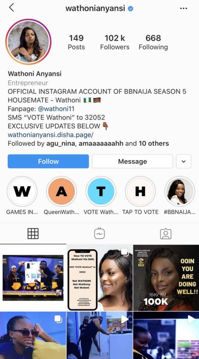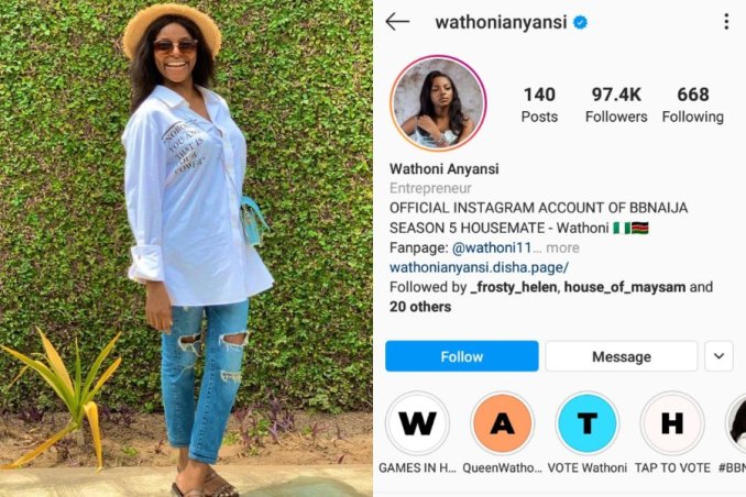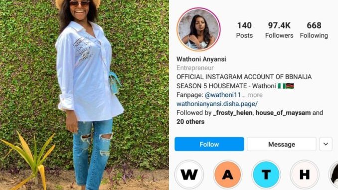 Big Brother Naija Lockdown season 5 housemate, Wathoni has been verified on Instagram.